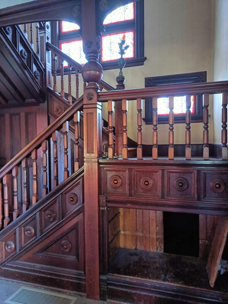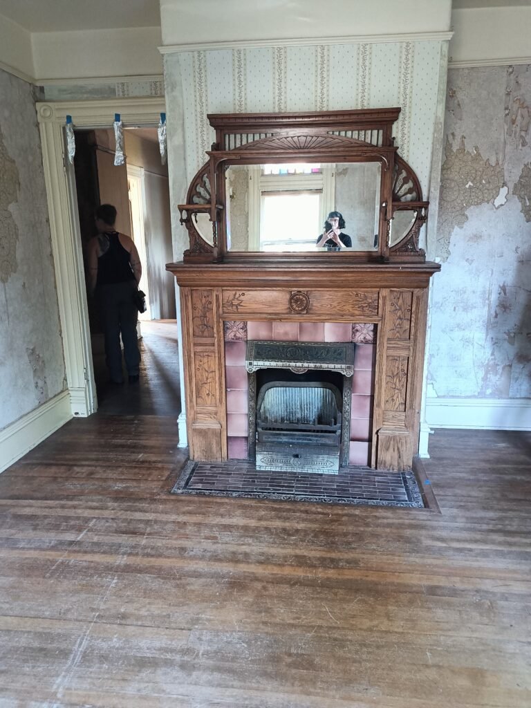 We were in good hands with our guide Paranormal Pete, who knows the resident spirits well. As we entered, we heard what sounded like playful children’s laughter echo through the hall. Some areas of the house are cordoned off as “ghost-only” spaces — a large upstairs closet, the servants’ stairwell, and a few closed rooms. Pete brought along an array of investigative tools for us to use, including EMF meters, dowsing rods, and a spirit box, which he later demonstrated to attempt communication with the unseen residents.